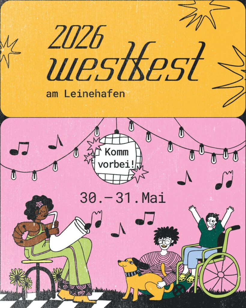 Das Westfest von der Flause findet wieder statt! Am 30. und 31. Mai laden wir alle aus der Nachbarschaft ein, mit uns ein großes Fest zu feiern. Wir freuen uns auf viele verschiedene Menschen, die zusammenkommen, um Spaß zu haben, leckeres Essen zu futtern, sich auszutauschen und neue Sachen zu lernen.